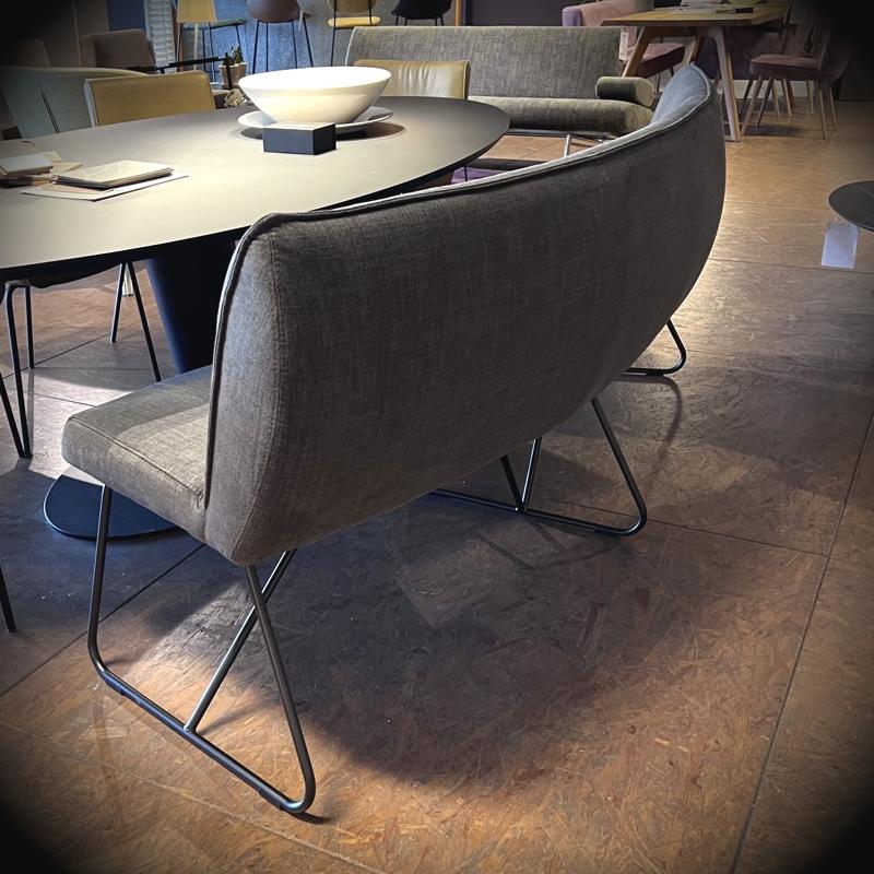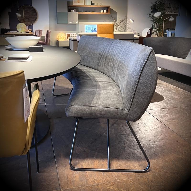 Comfortabele eetbank van ca 180cm.Uitermate geschikt voor bij een ovale tafel vanwege de gebogen vorm.