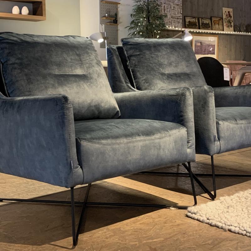 Compacte fauteuil met zwart stalen poten.Uitgevoerd in het mooie Kenia leder, in de kleur Taupe.