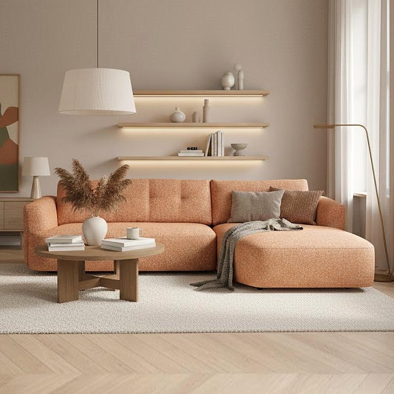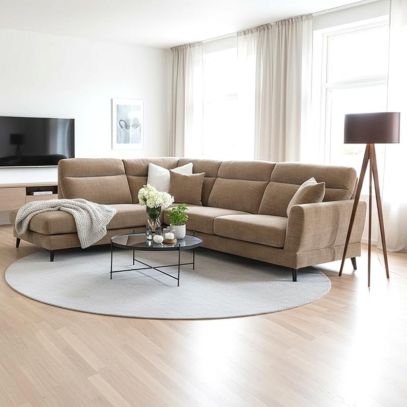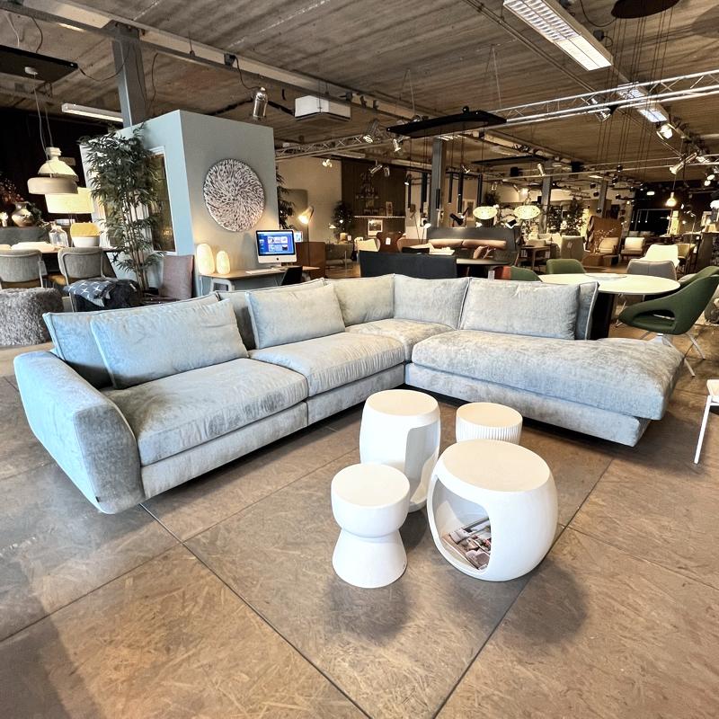 Riante hoekbank met ronde vormen.Pocketveren in de zitting.