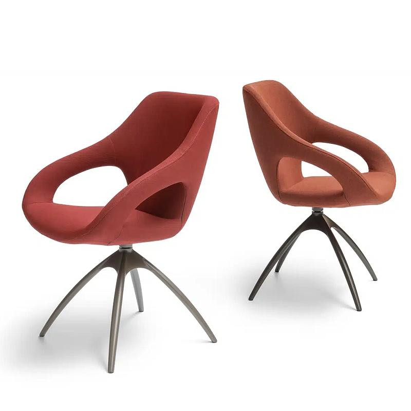 Wat een mooie lijnen in deze comfortabele eetstoel met draaipoot.De voet kan in 11 kleuren epoxylak of in gepolijst aluminium.