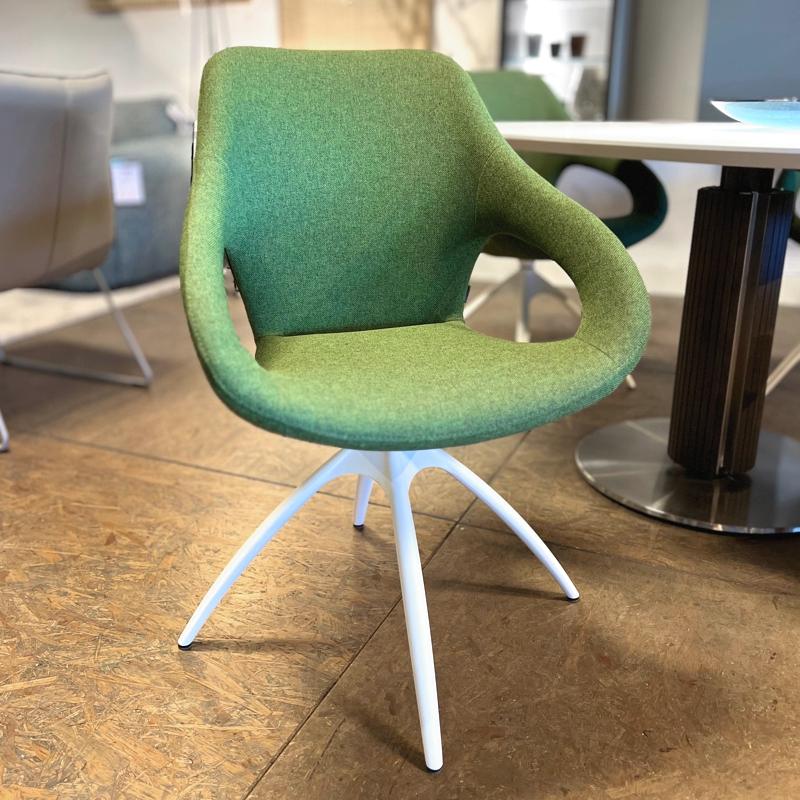Heerlijke eetfauteuil leverbaar met diverse onderstellen, al of niet met wielen.Diverse stoffen en leersoorten mogelijk voor de bekleding. Het frame kan in liefst 8 kleuren...